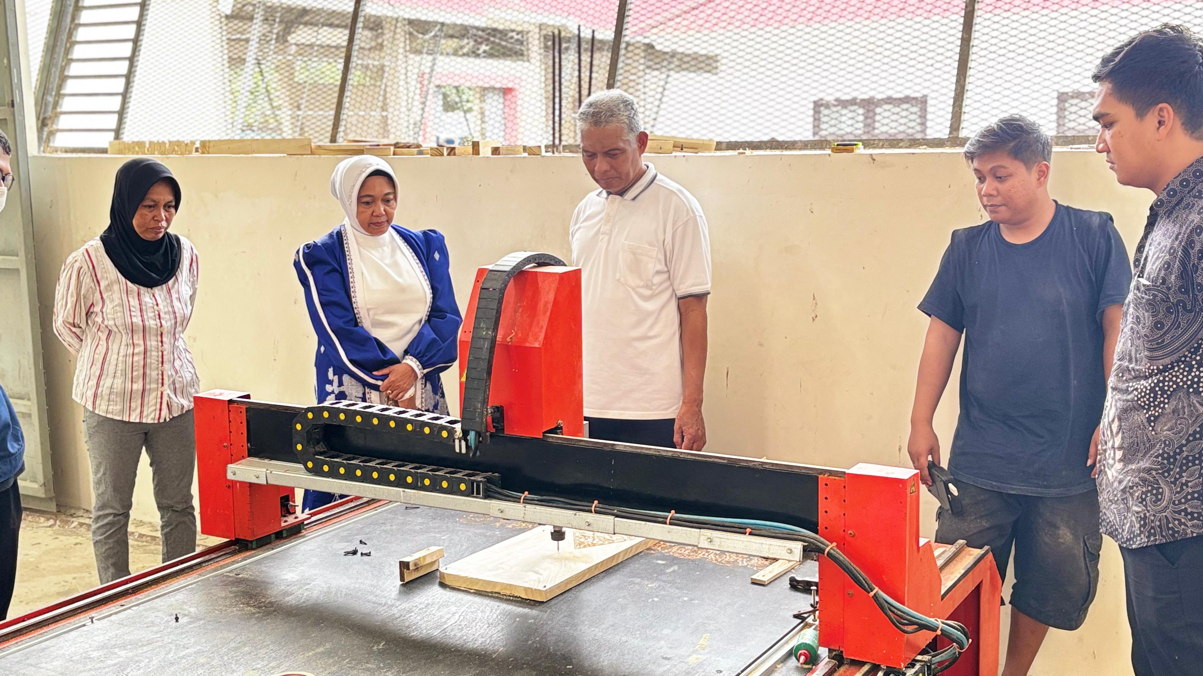 Sigi, Minggu (27/9/2025) – Ketua Dewan Kerajinan Nasional Daerah (Dekranasda) Kabupaten Sigi, Dra. Hj. Siti Halwiah, M.Si., melakukan kunjungan ke Sentra Industri Mebel Rotan dan Kayu di Desa Jono, Kecamatan Dolo Selatan. Kunjungan tersebut bertepatan dengan berlangsungnya kegiatan Pendampingan dan Diversifikasi Produk Sentra Mebel Kayu yang merupakan kerja sama antara Dinas Perindag Kabupaten Sigi dengan Dinas Perindag Provinsi Sulawesi Tengah. Dalam kesempatan tersebut, Ketua Dekranasda meninjau langsung ruang galeri sentra serta ruang produksi kemasan yang menjadi salah satu fasilitas penunjang bagi para pelaku Industri Kecil dan Menengah (IKM) di Kabupaten Sigi.